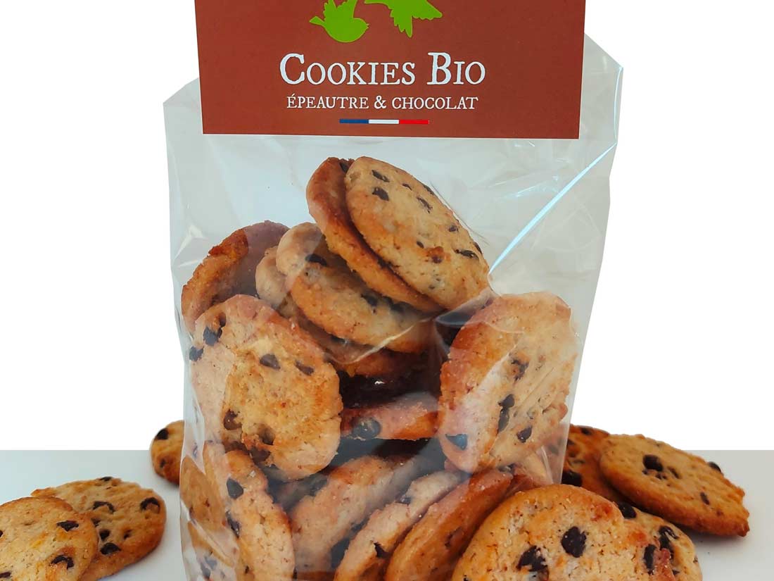 Farine de blé bio T80 2,30€/kg Farine bio de variétés anciennes de blé 500g 1,85€ Sablés aux pépites de chocolat (cookies) – sachet de 230g 4,90€